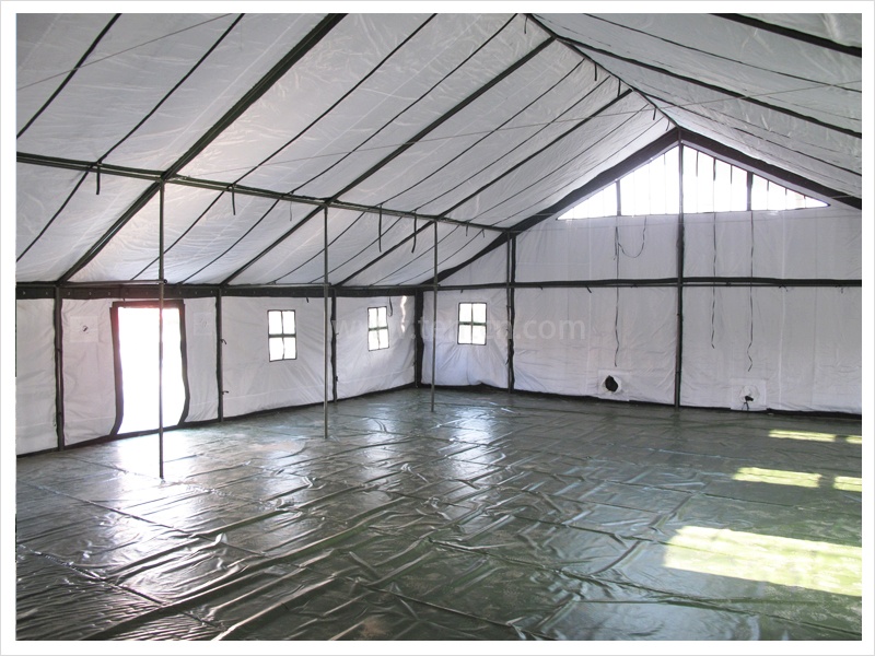 該帳篷穩(wěn)定性優(yōu)良,抗風(fēng)承載能力強(qiáng),安全可靠。結(jié)構(gòu)簡(jiǎn)單,組裝方便,采用套管式通頭、彈簧插銷連接,同類桿件可以互換,無需任何組裝工具。篷布采用滌綸草綠(林地?cái)?shù)碼)防水帆布,防水效果好。保溫隔熱、通風(fēng)性能好,寒區(qū)、熱區(qū)通用??煽v向拓展,即將兩頂帳篷的一面山墻拆除,拼接成一頂帳篷,使用面積擴(kuò)大一倍。